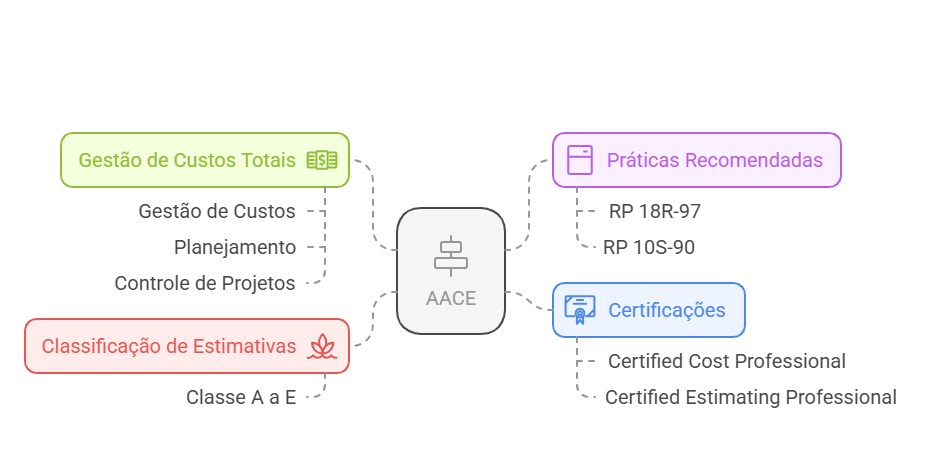 A AACE International é uma organização focada especificamente em engenharia de custos, planejamento e controle de projetos. Seus padrões são amplamente utilizados em setores como construção, energia e manufatura.